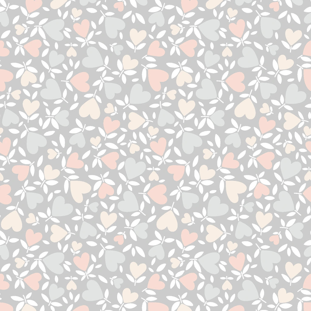 Maywood Studio Honey Bunny Hearts Light Gray Fabric