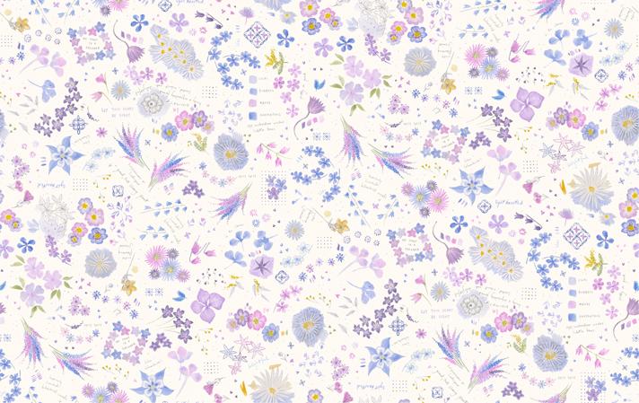 Moda Delphinium Collage Snowdrop Fabric