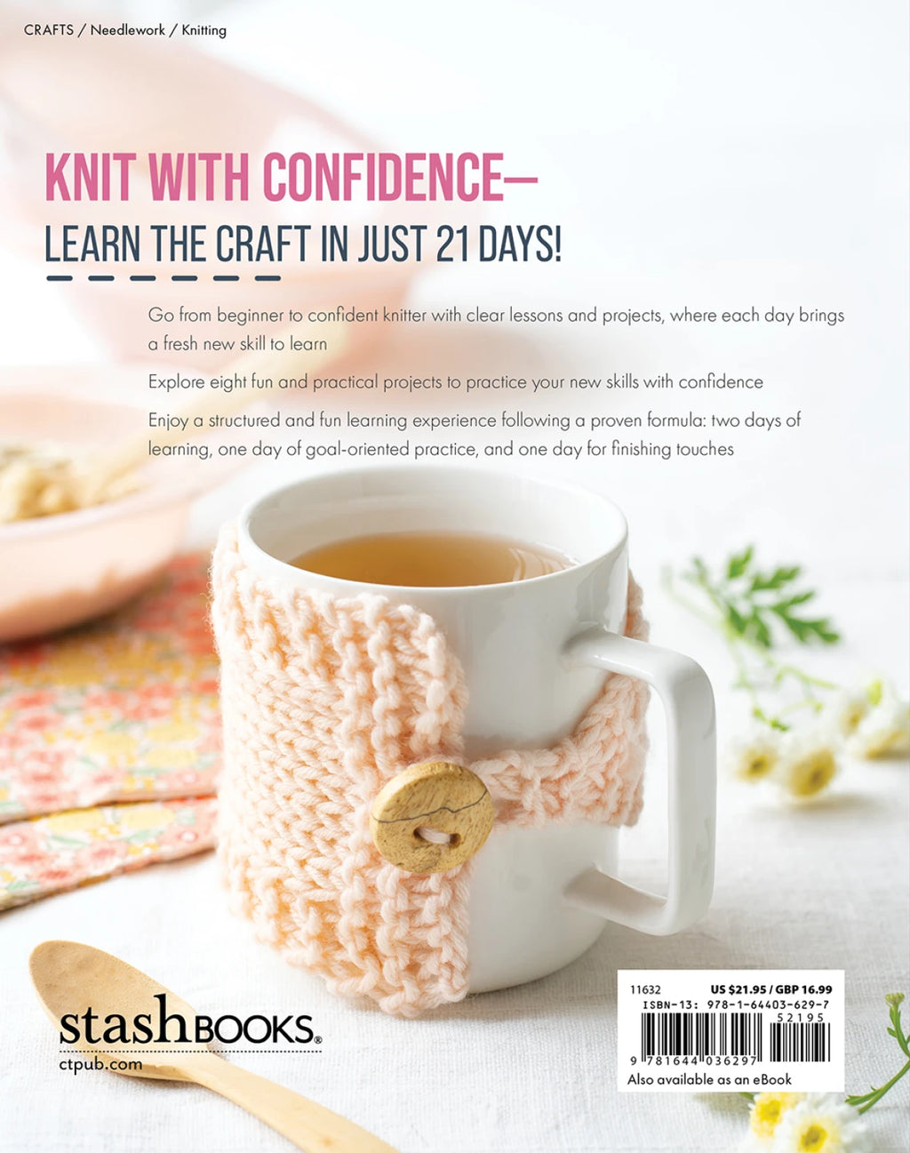 In just 21 days, you’ll go from complete beginner to confident knitter! You’ll learn the essential techniques and stitches through clear, illustrated, step-by-step tutorials.