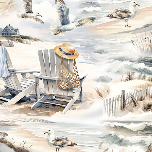 Benartex Coastal Escape Coastal Scenic Neutral Fabric