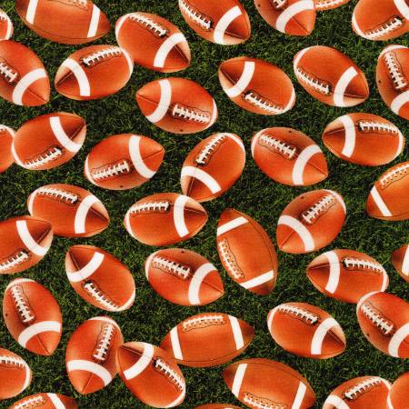 Robert Kaufman Sports Life Footballs in Grass Green Fabric ONLINE PURCHASE ONLY