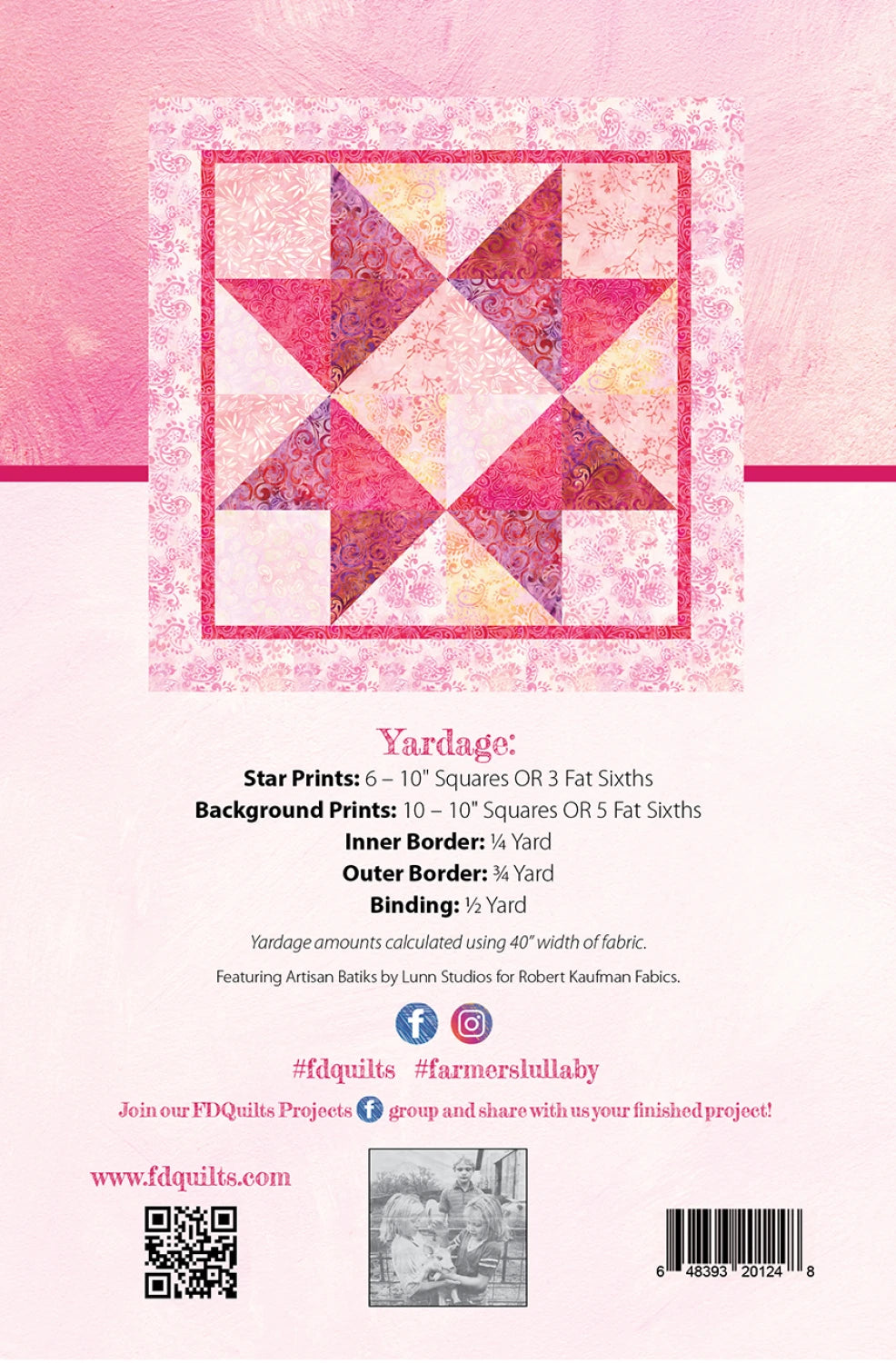 Farmer's Lullaby is a sweet and quick quilt to make. Imagine holiday colors to create a festive wall hanging, or imagine sweet, soft fabrics for a baby quilt. Finishing at 44" x 44" makes this quilt a perfect wall hanging or baby quilt. The pattern uses 10" squares or Fat Sixths, which makes it easy to kit! The pattern is printed in full color with easy-to-follow instructions and graphics.