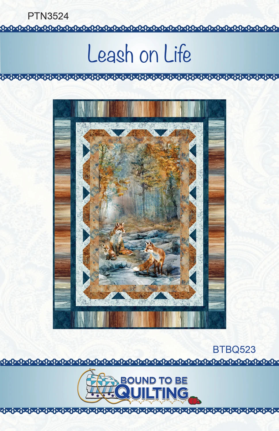 This wonderful, artistic 24" panel of a fox family in a fall scene can bring nature into your home. Interesting pieced inner border highlights the panel scene. The striped border fabric adds further intent to the project. A confident beginner will surely enjoy making this 48" by 64" quilt. Fabric used in this design is from the Fox Den collection by Northcott.