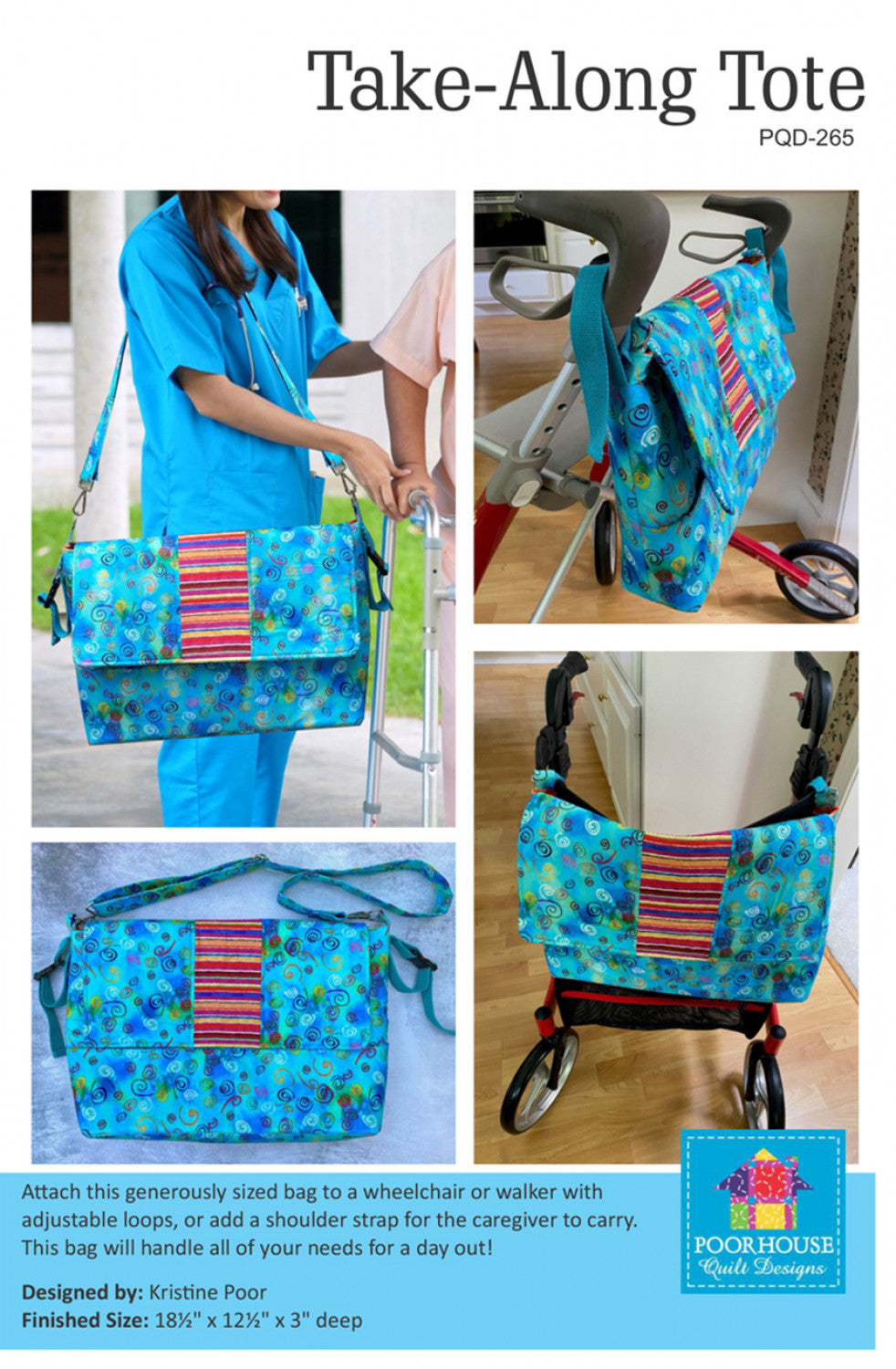 The Take-Along Tote is a shoulder bag that converts to a walker or wheelchair bag. Great for the caregiver and the individual. It’s got adjustable loops and a comfortable shoulder strap. Easily installs on walker/wheelchair. This bag is large enough to handle your needs for a day out!