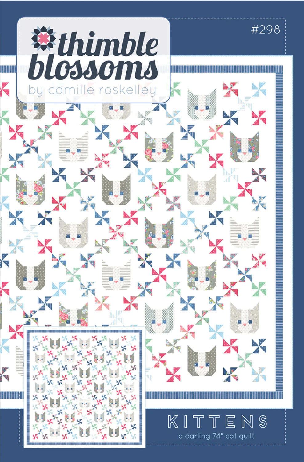 A sweet 74” x 74” cat quilt. Cats and quilts, a perfect pair. A cat named Stitch fabric collection by Camille Roskelley. Full color pattern.