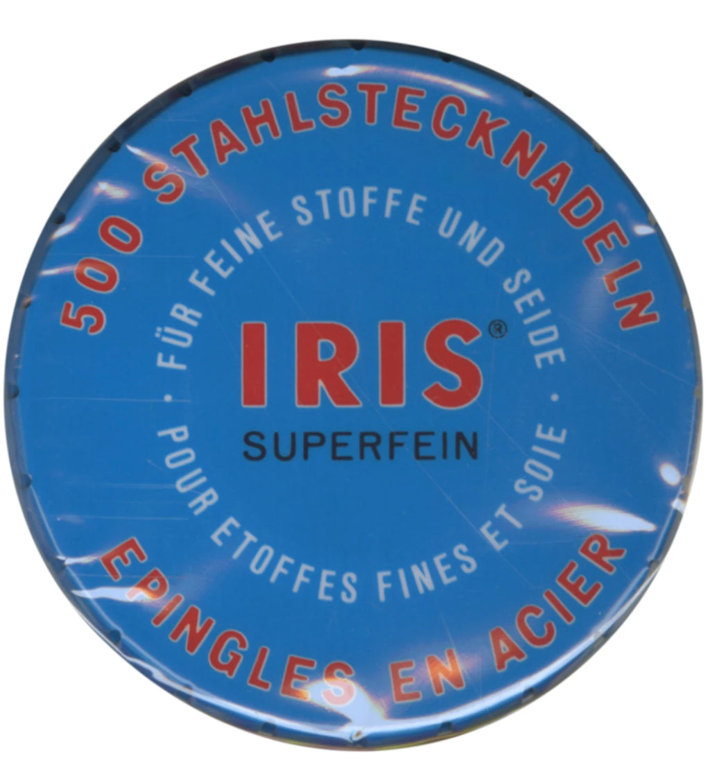 Made in Switzerland, these extra long hardened steel pins are nickel-plated with super sharp points. Especially good for all fine fabrics. Won't leave holes or bend out of shape. Pins 500ct blue tin on card.