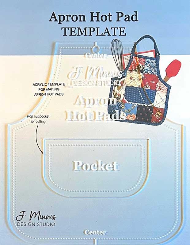 Stitch a set of adorable Apron Hot Pads using a Mini-Charm Pack. Add lace trim to the pocket and tiny D-rings for a fun and functional hot pad. Finished size 9" high x 8" wide, not including neck straps.
