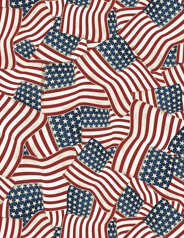 Wilmington Prints Founding Glory Packed Flags Wide Back Fabric