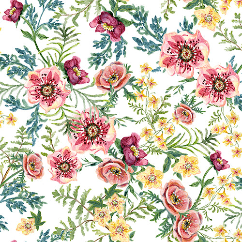 3 Wishes Forest Friends Floral White Fabric ONLINE PURCHASE ONLY