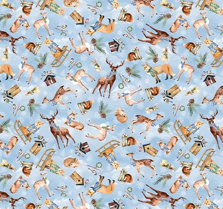 Benartex Woodland Wonderland Animals Light Blue Fabric