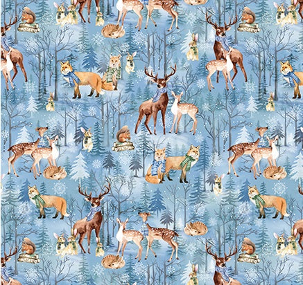 Benartex Woodland Wonderland Scenic Medium Blue Fabric