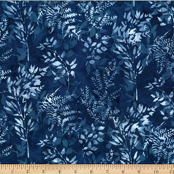 Hoffman Fabrics Autumn Mist Leafy Branches Navy Batik Fabric