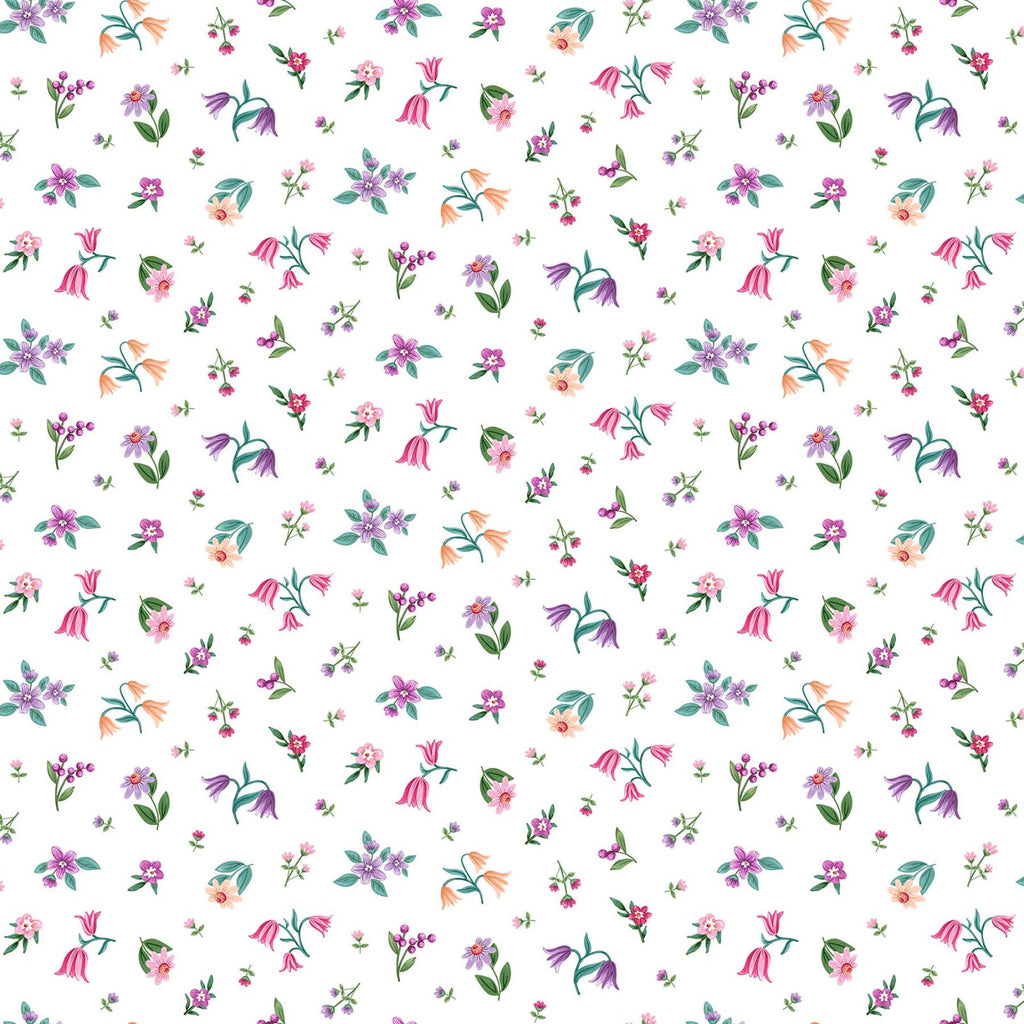 Northcott Unicorn Dreams Flower Toss White Fabric ONLINE PURCHASE ONLY