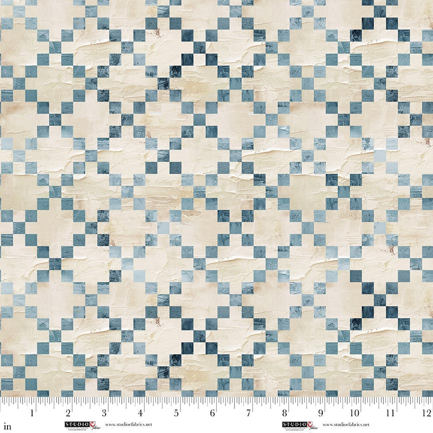 Studio E Behind Blue Eyes Plaster Nine Patch Cream Fabric