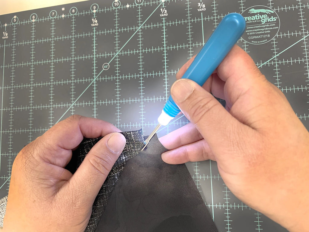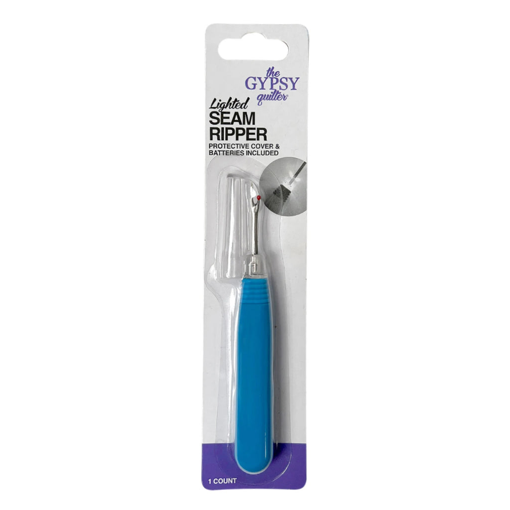 This lighted seam ripper is perfect for ripping out stitches, cutting threads, and opening button holes. The bright light illuminates the area you’re working on with a simple slide of the easy on/off switch. It has a fine sharp blade with a safety ball to protect the fabric and a clear cap to protect it when not in use. Ridges along the top of the handle add grip for better control while you work.
