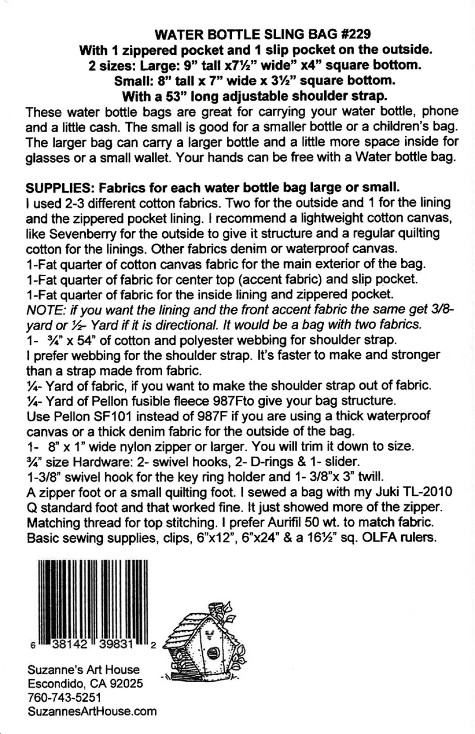 Water Bottle Sling Bag Pattern From Suzanne's Art House Patterns