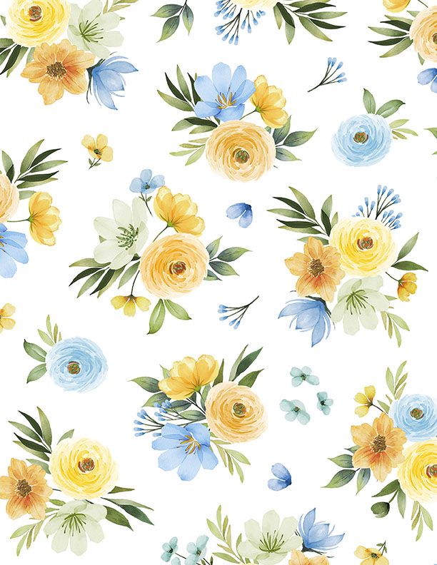 Wilmington Prints Gentle Meadow Bouquet Toss White Fabric